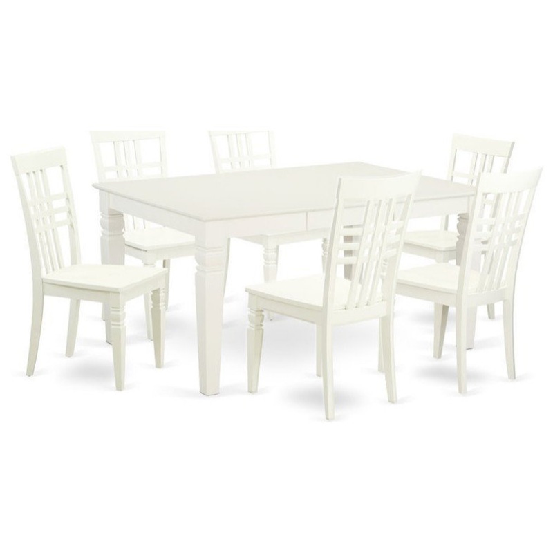 This majestic dining set is comprised of one table and six chairs in a brush Linen White finish. It has a maximum capacity of six people. This seat can be situated in the dining room or a kitchen as it does not take much space. It is suitable for a nuclear