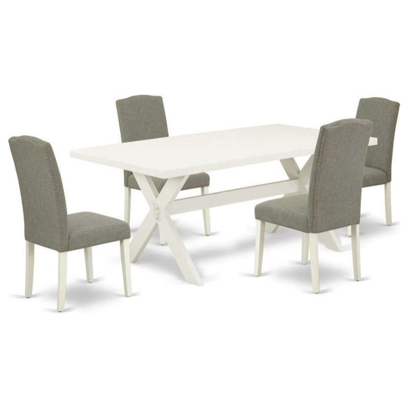 This dining room set includes 4 amazing Parson dining room chairs and a gorgeous kitchen table. This kitchen rectangular table is offered in an elegant Linen White finish. In addition, the Parson Chairs in a Dark Shitake linen fabric to enhance the eleganc