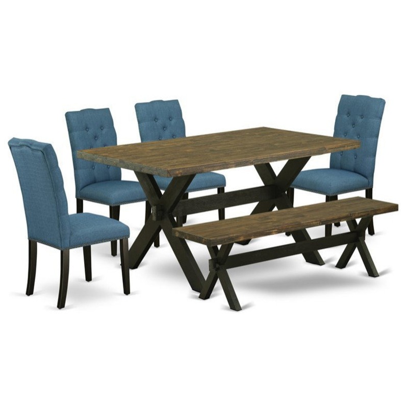 East West Furniture X-Style 6-piece Wood Dining Room Set in Black/Mineral Blue – Transitional – Dining Sets – by Homesquare