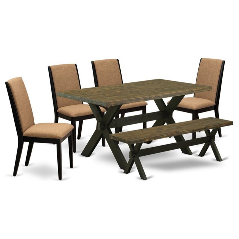 East West Furniture X-Style 6-piece Wood Dining Set in Black/Light Sable – Transitional – Dining Sets – by Homesquare