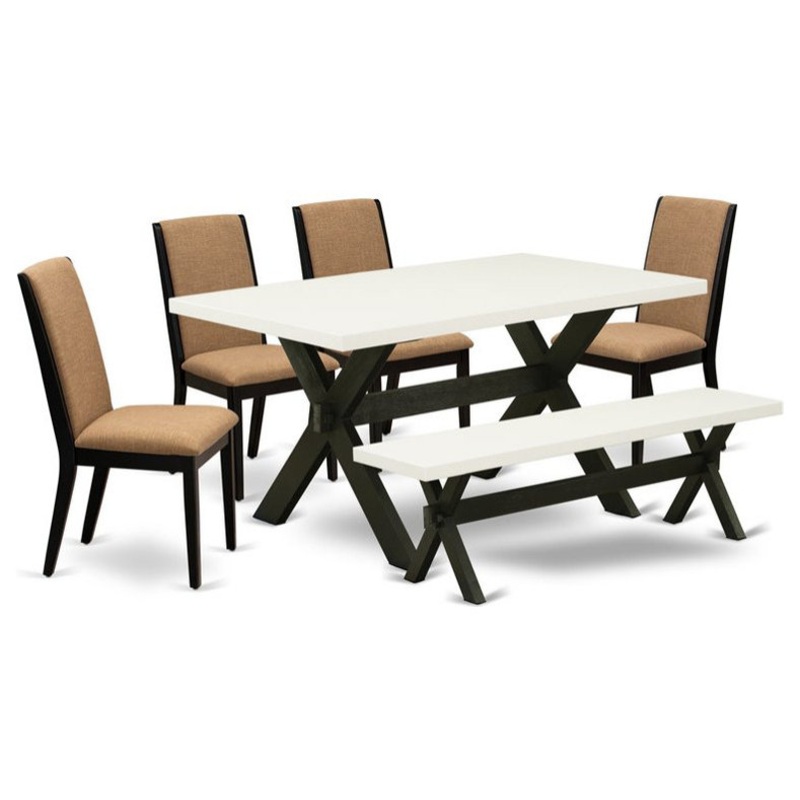 This rectangular table set includes 4 wonderful Padded Parson Chairs, an amazing small bench, and a wonderful dining table. This modern dining table is offered in an elegant Wire Brushed Black finish. In addition, the Parson dining chairs in a Light Sable linen fabric and wonderful Linen White indoor bench top to enhance the elegance of any kitchen or dining area. Our kitchen table set delivers great durability because this rectangular dining table and wooden bench is built from high quality Asian Wood which can bear the weight of 3 Lbs. We have created these Parson dining room chairs and a modern dining table, small bench with the help of highly experienced carpenters, who generate a smooth and high-end finish to this dining set. We try to offer innovative as well as easy to assemble products. Our high-quality dining table set is perfect for you and your beautiful dining area as well as the kitchen area. You can use it for casual home parties or intimate gatherings. Keep enjoying East West modern furniture!