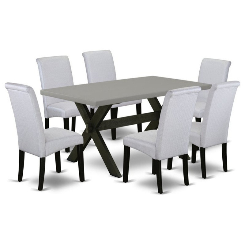 Its dining room set includes 6 mid century dining padded chairs and 1 modern rectangular dining table. This modern dining table has a rectangular table top and stunning legs. The solid wood body and soft padded back ensure that these padded parson chairs sturdiness and offers decent support to your back, in addition to their ideal size these Urban Style chairs are trouble-free to assemble and easy to rearrange. These simple but charming Dining Chairs will add ambiance and style to your dining room. Provide your home a pop of chic style with this must-have modern dining set. A contemporary twist on a classic design, this eye-catching dining table set design will liven up any timeless appeal. Just by switching out your chairs and modern rectangular dining table, you can effortlessly refresh your dining space. This dining room table set is very easy to construct. You only need around 1 hour to build this dining room set. This dining room set comes with all the necessary hardware to assemble this dining room set. These mid century dining chairs are easy to carry or move around. Enjoy with East west Furniture!