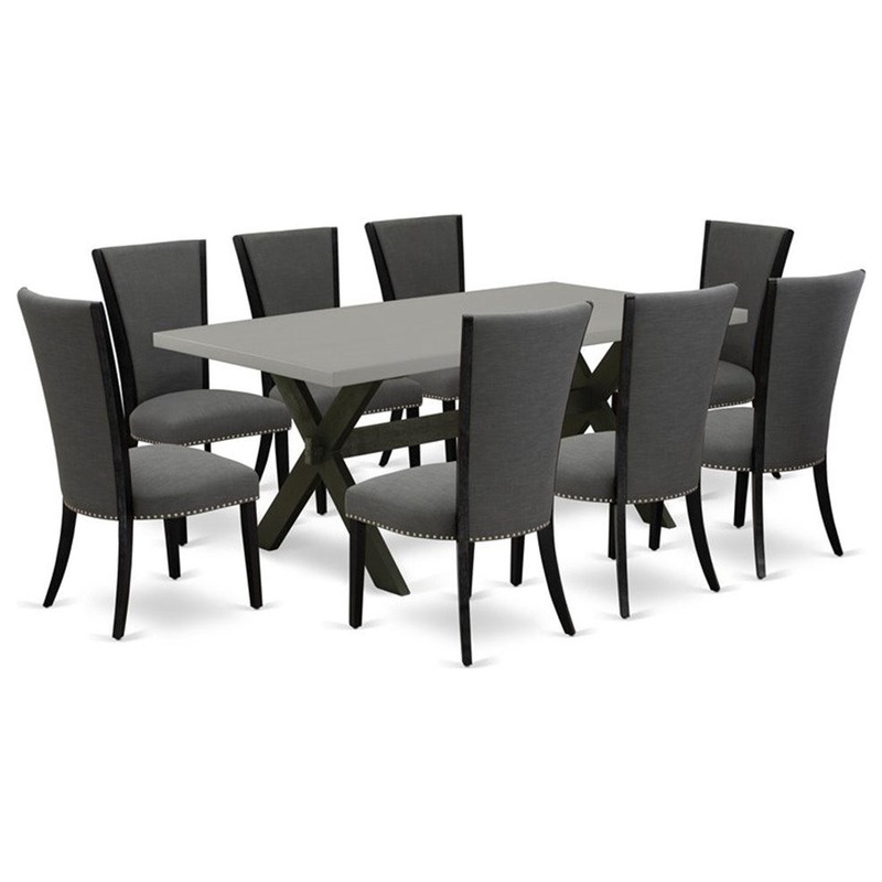 Introducing East West furniture's new furniture set of elegant dining table combined with parson chairs. Impressive Wirebrushed Black and Cement color with cross leg design define this exclusive rectangular dining table and chairs set. Complete with a set