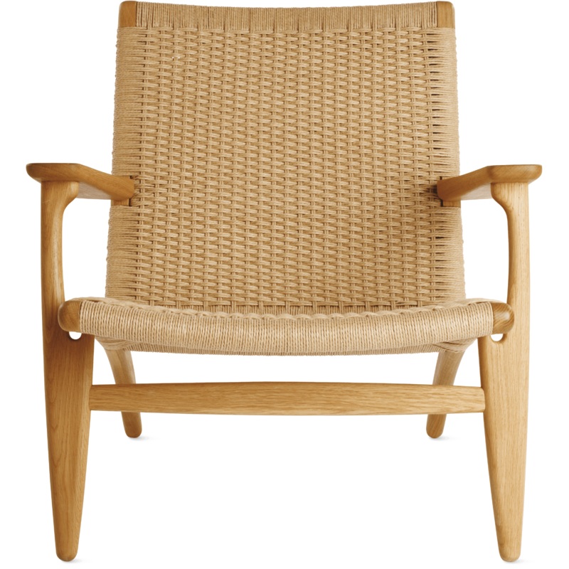 Sculptural and balanced, the Easy Chair (1950) is a classic example of the organic functionalism for which Hans Wegner is famous. Its natural elegance is exemplified by the 1,300 feet of paper cord that creates the seat and back, which takes a skilled craftsperson eight-plus hours to weave. The solid oak frame has fluid lines and exacting joinery. Relaxed and intuitively ergonomic, the Easy Chair can blend with modern or traditional interiors in nearly any room in the house. Made in Denmark.