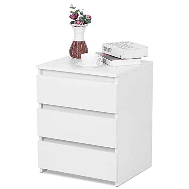 EBTOOLS – Comodino bianco con 3 cassetti in legno, 45 x 38,2 x 56 cm