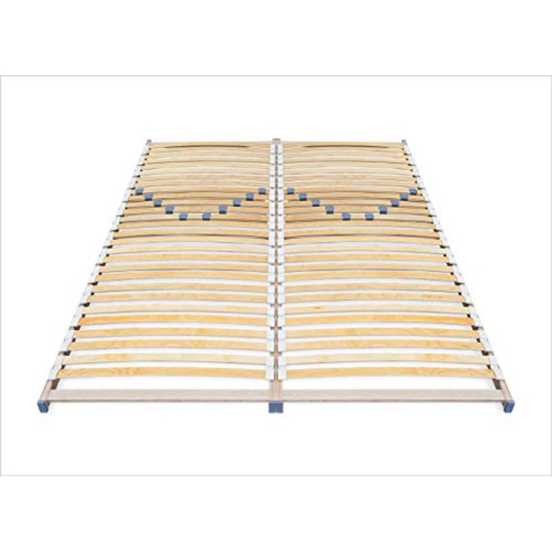 Dettagli: Rete a doghe di alta qualit con regolazione della durezza nelle misure: 140 x 200 cm – 160 x 200 cm – 180 x 200 cm – 200 x 200 cm Struttura della rete a doghe interamente realizzata in legno di betulla incollato a strati; doghe montate con speciali maniglie DUO sulle radiazioni a doghe – Il numero generale di doghe 2×28 pezzi (56 listelli) + 2 x 5 pezzi (10 listelli) per la speciale regolazione del grado di durezza. Ci significa che riceverete un totale di 66 doghe in legno per un comfort ottimale – Altezza della rete di circa 4 cm. La dimensione effettiva della rete a doghe di 160 x 200 cm di 159/197 cm, ecc. Riceverete due reti a doghe separate che possono essere utilizzate singolarmente o insieme. – Ogni griglia regolabile liberamente in grado di durezza per consentire un adattamento individuale alle vostre esigenze. – La rete a doghe viene fornita in una scatola di cartone con istruzioni per il montaggio (lingua italiana non garantita). ATTENZIONE: ogni rete a doghe richiede un supporto adeguato tramite listelli laterali (normalmente standard in ogni letto) e anche a partire da una larghezza di 120 cm al di sopra di un supporto obbligatorio al centro delle doghe attraverso un battiscopa centrale (anch’esso in tutti i letti standard comuni). Prima di inserire la rete a doghe, si prega di verificare se posso disporre di tali condizioni. Altrimenti necessario aggiornarlo nei battiscopa laterali e centrali. Vantaggi del produttore direttamente in sintesi: Rete a doghe durevole grazie all’uso di materiali di alta qualit Favorisce un sonno sano e tranquillo.