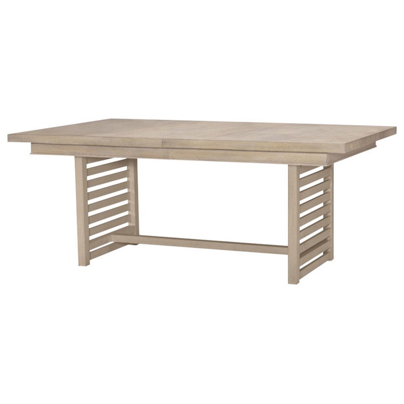Complete Trestle Table - Natural tones, classic coastal influences, and a love of casual, come together to create the Edgewater collection. Details such as canted legs, a shutter motif on drawer fronts and bases, along with the Aged Bronze hardware, lend t