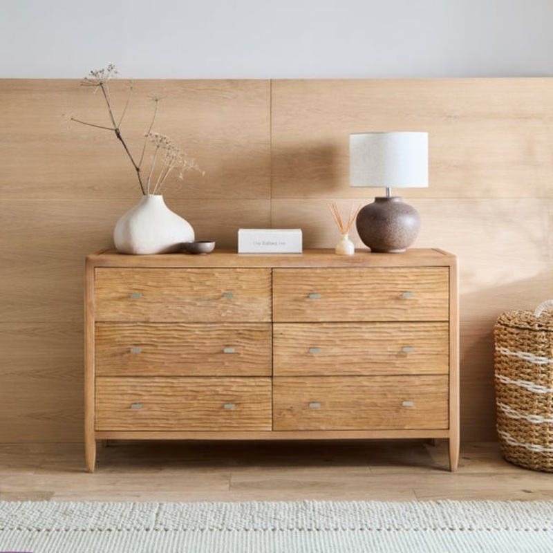 Mango Wood frameHand carved designLarge drawersThis chest of drawers are a stunning storage solution that combines exquisite hand-carved craftsmanship with practicality. Made from durable mango wood, this chest features six spacious drawers, perfect for or