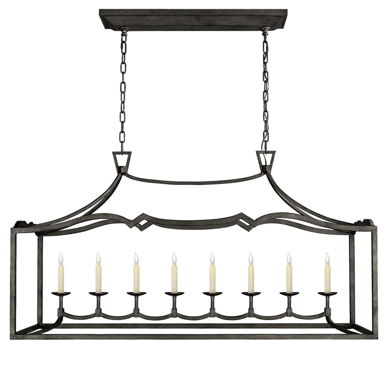 DimensionsWidth: 51.75"Length: 16.00"Height: 28.00"Extension: 16.00"Weight: 37.00 lbChain: 6'Canopy: 6" x 28.5" RectangleFancy Darlana Large Linear Pendant in Aged IronLight InformationLight Bulbs and/or Light Source are not included.Unsure what bulbs to a
