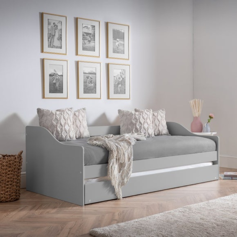 Sleek curved design perfect for any modern decorClassic pull-out underbed for guestsAvailable in Dove Grey, Anthracite, or Surf WhiteUpgrade your bedroom with the sleek and stylish Elba Daybed. Its curved design and classic pull-out underbed make it perfec