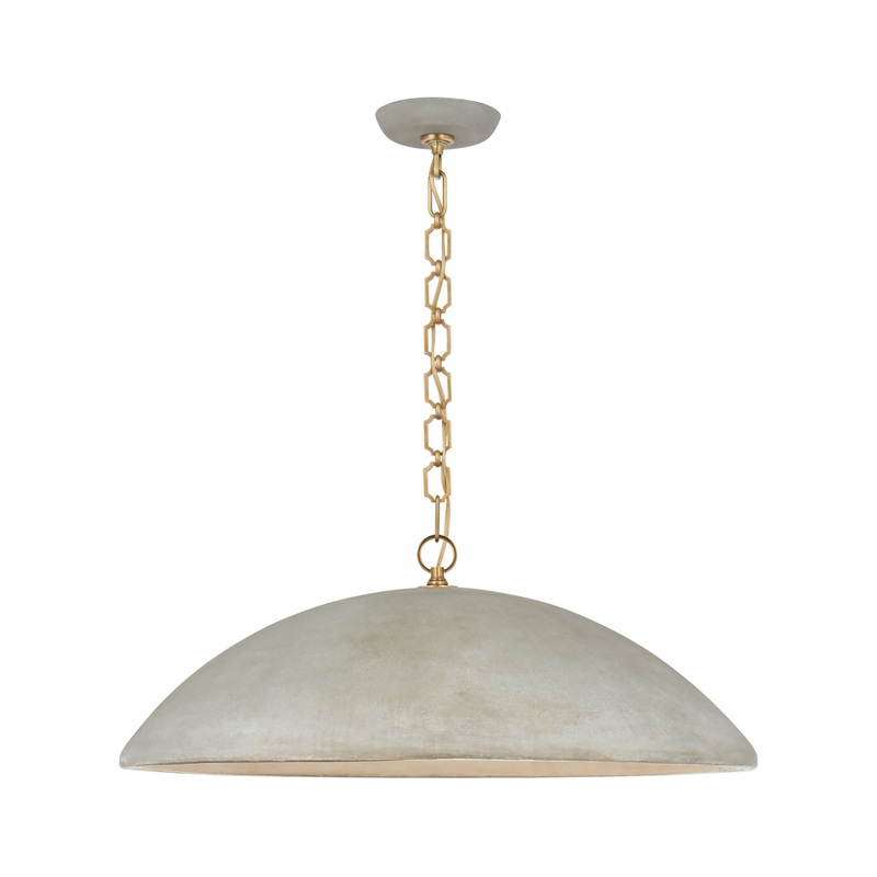 Commanding in scale and refined in form, the Elliot Grande Pendant by Visual Comfort is a masterfully designed fixture that anchors any room with sculptural elegance. Suspended from a bold, elongated chain, its sweeping dome shade introduces a sense of qui