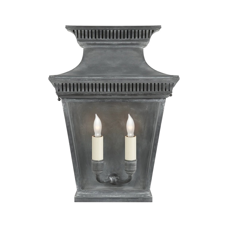 The Elsinore Medium 3/4 Wall Lantern is shapely, stately and classically elegant,with textured detail bringing added dimension to the piece.This open-air light source is ideal for delivering a soft, pleasing glow beside a front door, on columns along a patio, a shed or even a garage. Candelabra sockets add a touch of vintage flair. The Elsinore Medium3/4 Wall Lanternis part of the Chapman & Myers collection.
