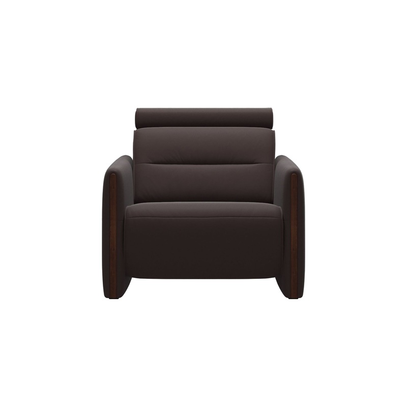 The Stressless Emily Wood Chair with Power pairs sleek design with full-body comfort in a compact, modern silhouette. With a motorized recline mechanism and adjustable headrest, this armchair provides smooth, personalized support at the touch of a button.