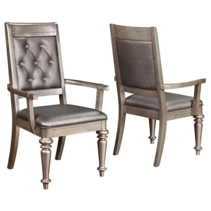 Emma Mason Signature Eustace Upholstered Arm Chair in Metallic Platinum (Set of 2) -Eustance Collection Emma Mason Signature -Danette Collection by Coaster Furniture -Metallic Platinum finish -Rhinestone button tufting -Upholstered seat and back -Sold in s