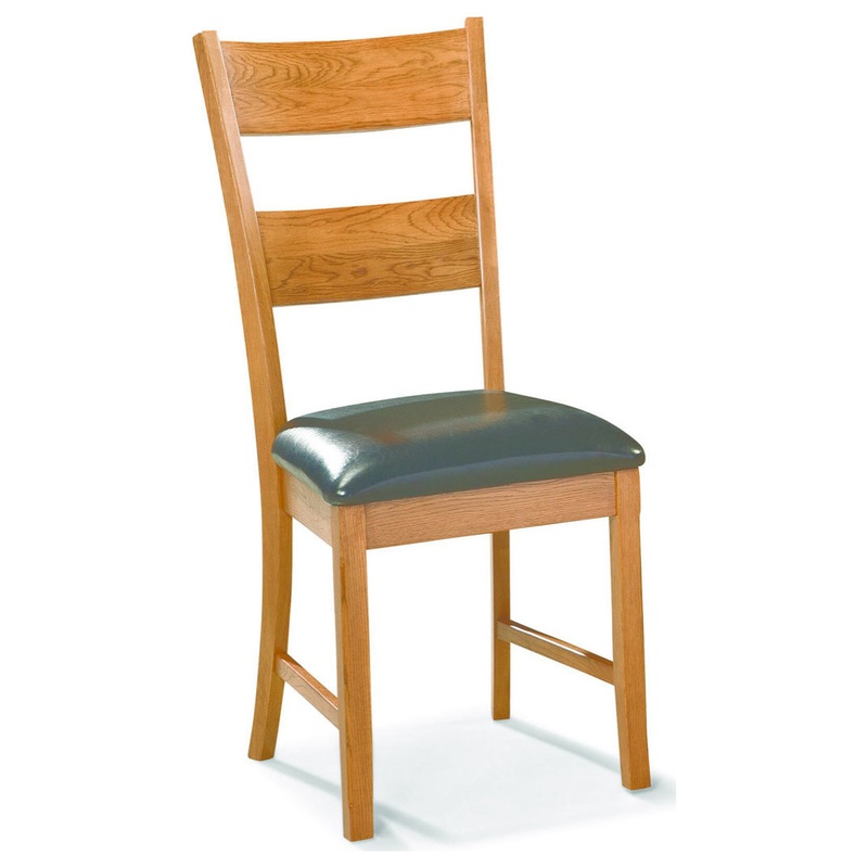Let this Emma Mason Signature Unity Ladder Back Chair in Chestnut (Set of 2) bring a more rustic look to your dining area. Its chestnut finish and lighter wooden tints help keep its look clean and fresh. Enjoy vinyl cushioned seating and sturdy structure.