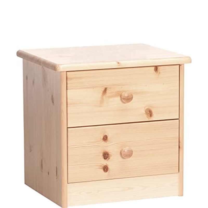 Dettagli: Comodino con 2 cassetti in Pino massello.Si abbina bene ai nostri letti in Pino.(senza letto e decorazione)Na… turale !Descrizione:Realizzato in solido Pino massello nativo.Il legno proviene da foreste europee, gestione sostenibile senza sostanze inquinanti.Superfici finemente levigate, verniciate naturali.Fondo del cassetto in MDFDimensioni:Circa 42 x 35x 41cm(Largo / Profondo/ Alto)