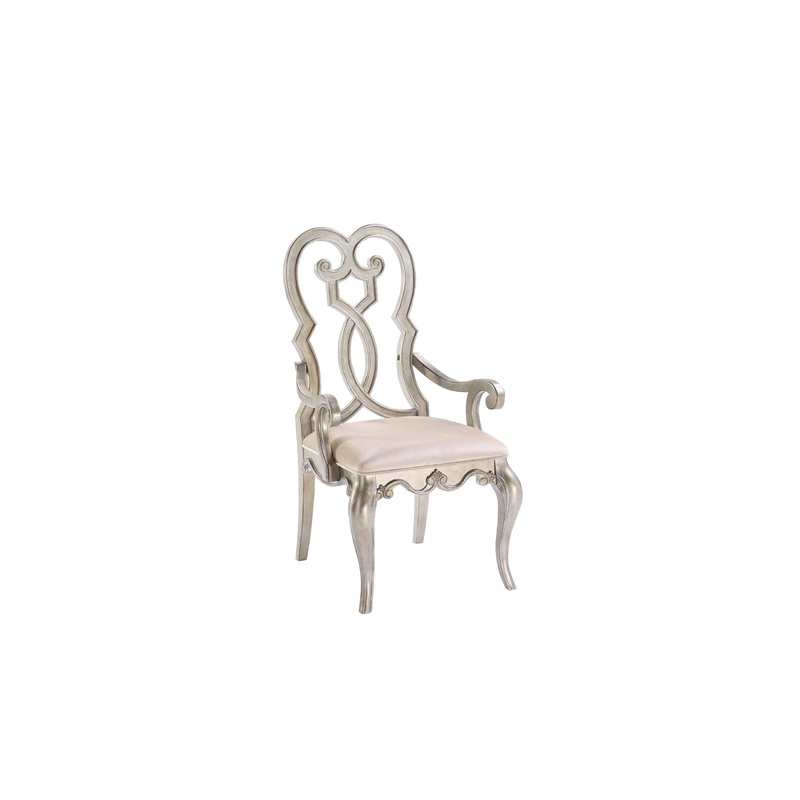 Esteban Arm Chair, Beige Fabric and Antique Champagne – Victorian – Dining Chairs – by Acme Furniture