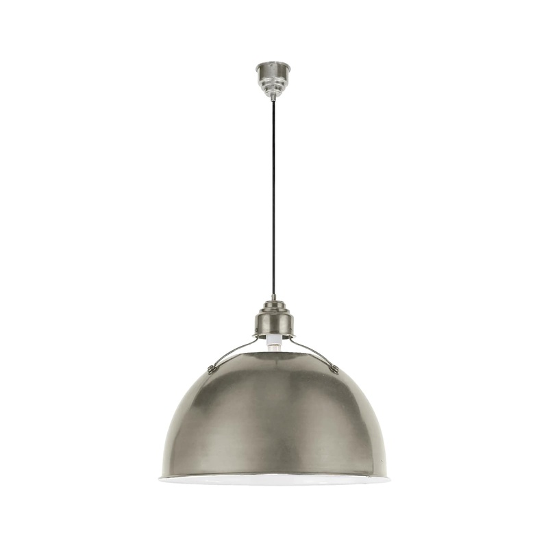 The Eugene Large Pendantrefines a classic design and delivers it to your chosen space. A detailed, concentric, round ceiling canopy and black cord add touches of finesse to this metal socket and hanging shade. A white shade interior helps direct and reflec