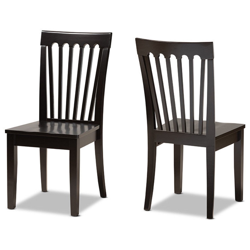 Timeless design is merged with modern comfort in the Eurich dining chair. Made in Malaysia, this solid wood chair features a sleek dark brown finish that lends a modern feel. An optimal balance of comfort and style, the Eurich features a smooth scoop seat,
