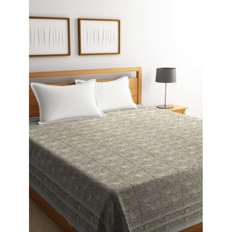 Fabindia Home Meghna Grey Cotton 118 TC Queen Bed Cover
