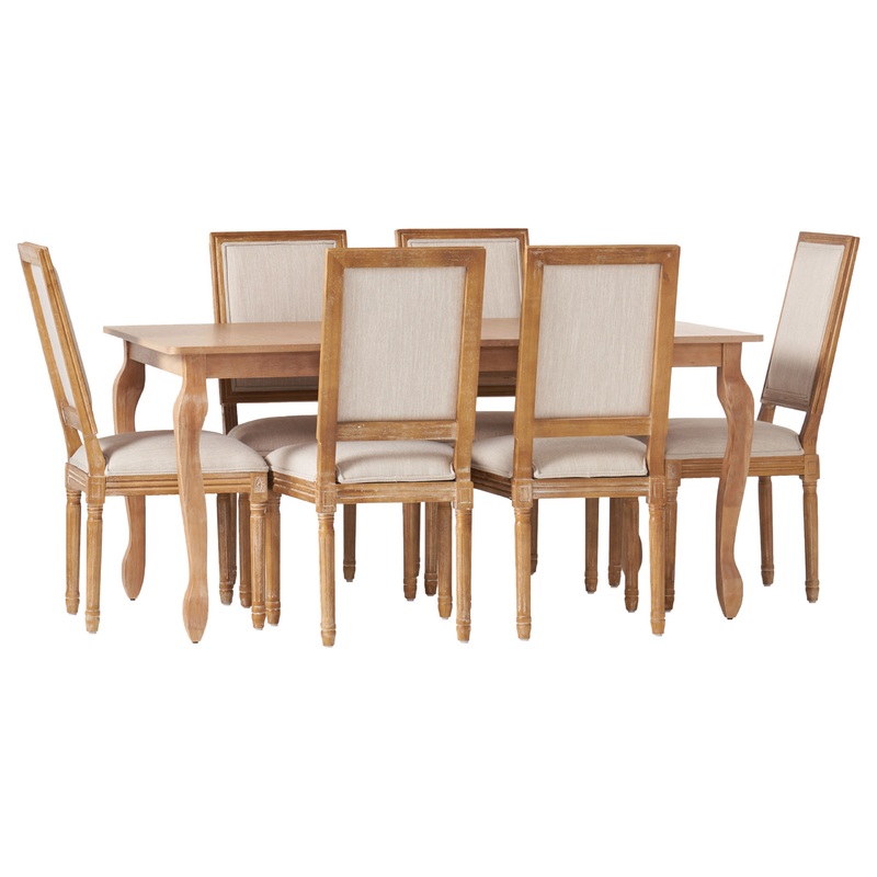 -FRENCH COUNTRY INSPIRATION: From slender fluted legs to rectangular backrests, this dining set offers an old-world French country inspiration for your home. The wire-brushed woodwork and elegant cabriole table legs bring your decor together with a mix of classic charm.