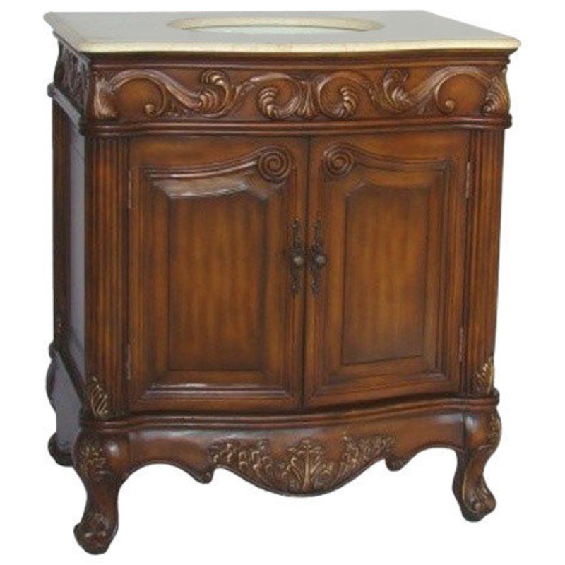 -Weight: 95lbsTransform your bathroom with the exquisite 32 inch antique white Fiesta bathroom sink vanity. This carefully handcrafted piece adds a luxurious appearance to your bath, boasting an extraordinary custom look. The simple carved trim enhances the antique feel of the furniture, making it a timeless addition to your home.