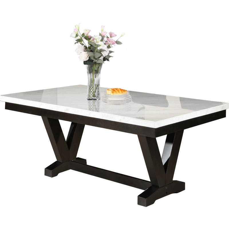 Put on the ritz with Finley dining by Steve Silver Company. The Finley Dining Table’s beautiful white marble top features one-piece veneer construction for a seamless look that is sure to please. This sophisticated table will seat six comfortably and will be sure to impress your family and guests! Matching Finley Side Chairs are available for purchase separately. Your purchase includes one dining table.