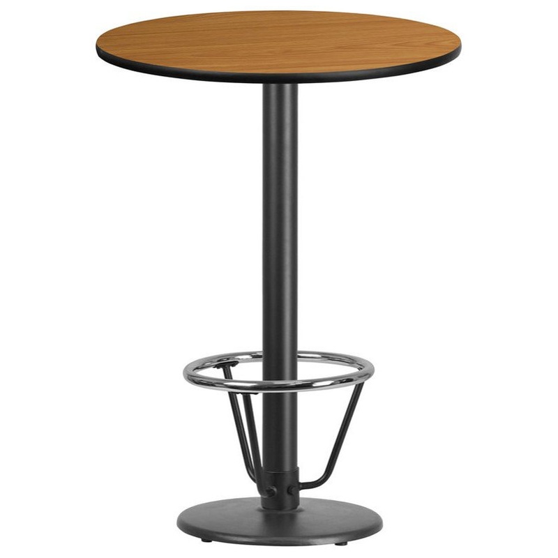 Complete your restaurant, break room or cafeteria with this table top and base configuration. This set is designed for commercial use to withstand the daily rigors in the hospitality industry. This set will also make a great option for your home as a dining table or in the rec room. The reversible natural or walnut top allows you to choose your color of choice and then affix to the base. Surface is heat, scratch and moisture resistant. Use a mild detergent and water, dry clean to keep your tables spotless. The convenient foot rest is the perfect accessory for a bar table, especially in the hospitality industry. Whether you are just starting your business or upgrading your furniture this table set will complete the look.