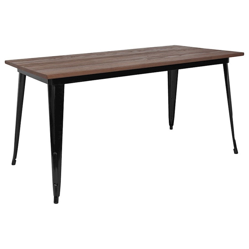 Make room in your modern or rustic space with this metal cafe dining table with wood top. The spacious tabletop is 30.25 x 60 inches that will comfortably accommodate six chairs. It features a gorgeous textured surface with a stabilizing brace that gives it increased stability while still allowing ample leg room. Rubber floor glides protect your floor by sliding smoothly when you need to move it. Designed for both commercial and residential use, this trend-setting table is a great choice for your restaurant’s dining area or your kitchen at home. [CH-61010-29M1-BK-GG]