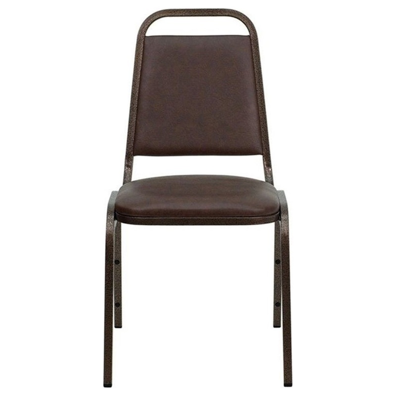 Organize events for any occasion with banquet chairs, these stylish ballroom chairs are the right choice for casual and formal events. Built for the commercial industry these trapezoidal back banquet chairs have been tested to hold up to 500 pounds. With a high seating capacity these stack chairs are perfect for the event rental business. This standout hospitality chair can be used as is and still command attention or be dressed up for formal events by placing a chair cover over it. The chair is cushioned with 1.5″ thick CAL 117 fire retardant foam and is covered in a durable, easy to clean vinyl upholstery. The sturdy frame with gracefully angled legs are made of 16 gauge steel in a lasting powder coated finish. Double support braces reinforce the frame to give it great strength and durability. Bumper guards prevent scratches on the frame when stacked (up to 10 high) and non-marring floor glides protect your floor by sliding smoothly when you need to move the chair. This multi-use stacking upholstered stack chair is an excellent option for churches, banquet halls, training rooms, hotels, convention centers and schools. Add banquet chairs to your home dining table to add a contrasting look to your dining room or kitchen.