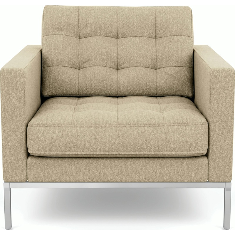 Florence Knoll modestly referred to her furniture designs as the meat and potatoes of interiors, and to this day they hold the same iconic American appeal as that most basic and functional of meals. Her Lounge Chair (1954) has the simple architectural lines and unparalleled construction of all modern classics. Its designed to last a lifetime, featuring solid wood inner frame, polished chrome outer frame, and no-sag seat suspension.