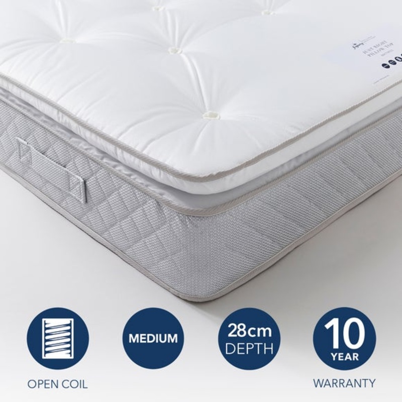 Open CoilPillow Top for extra cushioningMedium Support recommended for side sleepersEco-flex Filling for added comfortHand Tufted holds filling in place for consistent supportMicro Quilted Boarder with Wire Frame edge-to-edge support10 year GuaranteeHandma