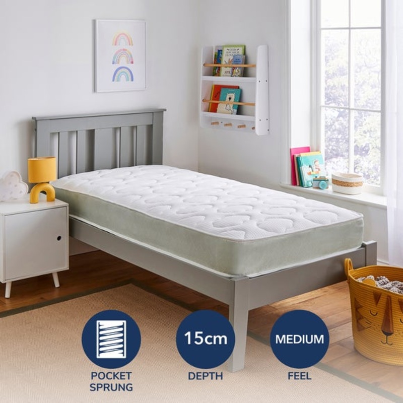 Pocket Springs600 SpringsHypoallergenicSingle SidedSuitable for Standard and Bunk bedsDelivered RolledFeaturing 600 individual pocket springs that respond independently to movement, this mattress minimises sleep disturbances. The recycled DUOS spring insul