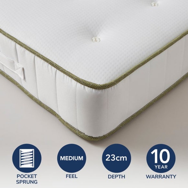 Memory Foam TopMemory Foam Pocket Spring HybridMedium SupportSuitable for all SleepersCarefully crafted, this mattress blends the luxury of memory foam with the tailored support of 1000 individually encased pocket springs. Prepare to be enveloped in sublim