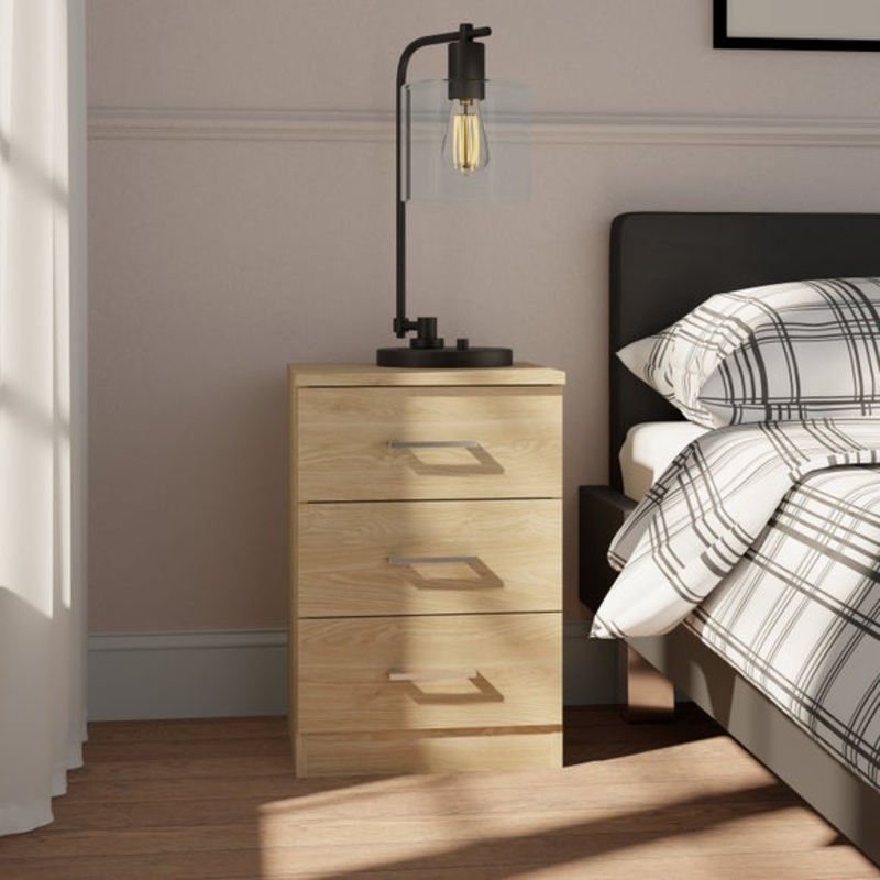 Standard bedside dimensionsAvailable in anthracite or oak effect colourways3 spacious drawersMetal drawer runnersAdd a multitasking bedside table to your space with this Foster 3 drawer bedside table. Doubling up as storage and a table top to hold a lamp o