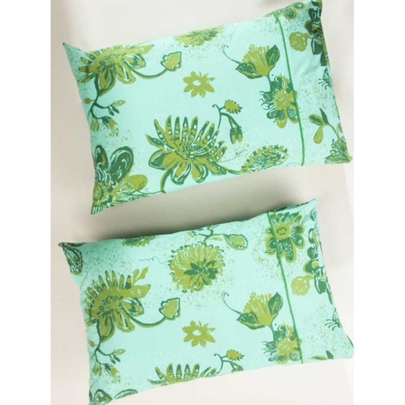 GR4670178031Freedom Tree Vidari Pure Cotton Green Pillow Cover - Set Of 2