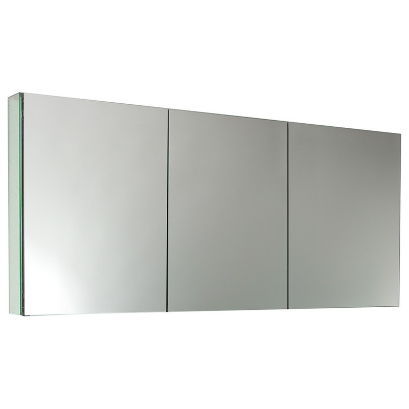 This 60″ medicine cabinet features mirrors everywhere. The edges have mirrors and also on the interior of the medicine cabinet. The inside features four tempered glass shelves. Can be wall mounted or recessed into the wall.
