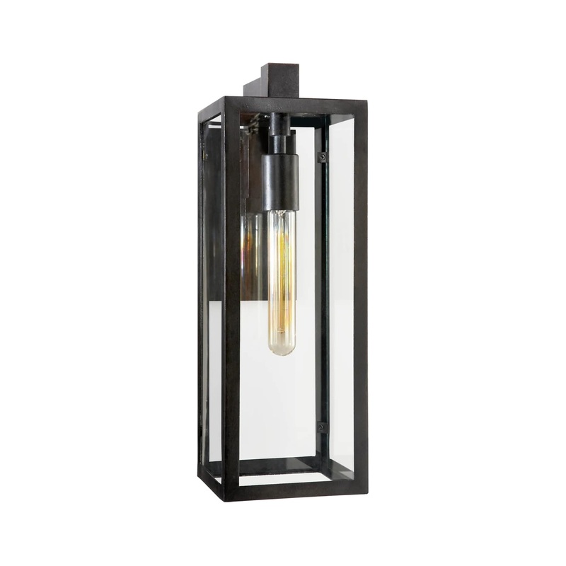 The Fresno Framed Medium Sconce is enviably modern and sleek, making this piece awell-proportioned lighting option for your outdoor space. Thissconce is versatile and will workwonderfully in a contemporary setting, as well as flattering industrial or Hamptons-inspired spaces.Available in an aged iron finish with clear glass panels. The Fresno FramedMedium Sconce is part of the Chapman & Myers collection.