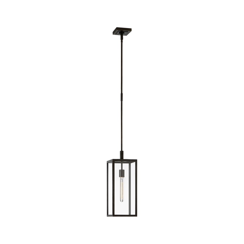 The Fresno Small Hanging Lantern by Visual Comfort offers a refined industrial look with clean architectural lines. Designed with simplicity in mind, this compact pendant pairs a square canopy with a structured open frame in forged iron. Its minimal silhou