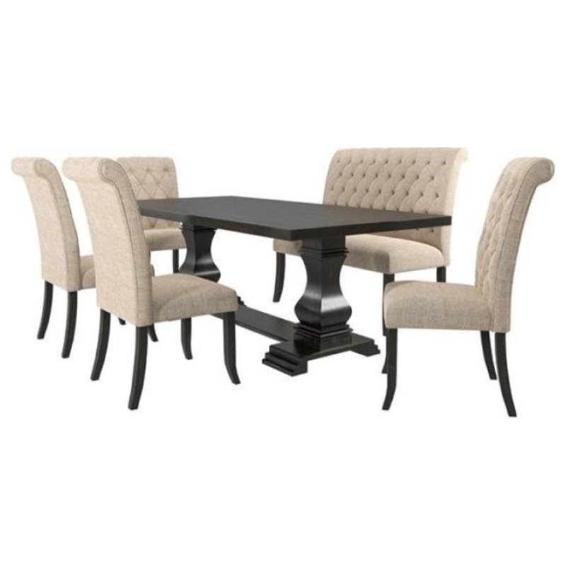 The Kabini Dining Table by Furniture of America showcases a stunning Antique Black finish and a gorgeous dual pedestal design. The rectangle dining table is roomy and spacious, offering ample seating for up to 6 as the sturdy solid wood construction delive