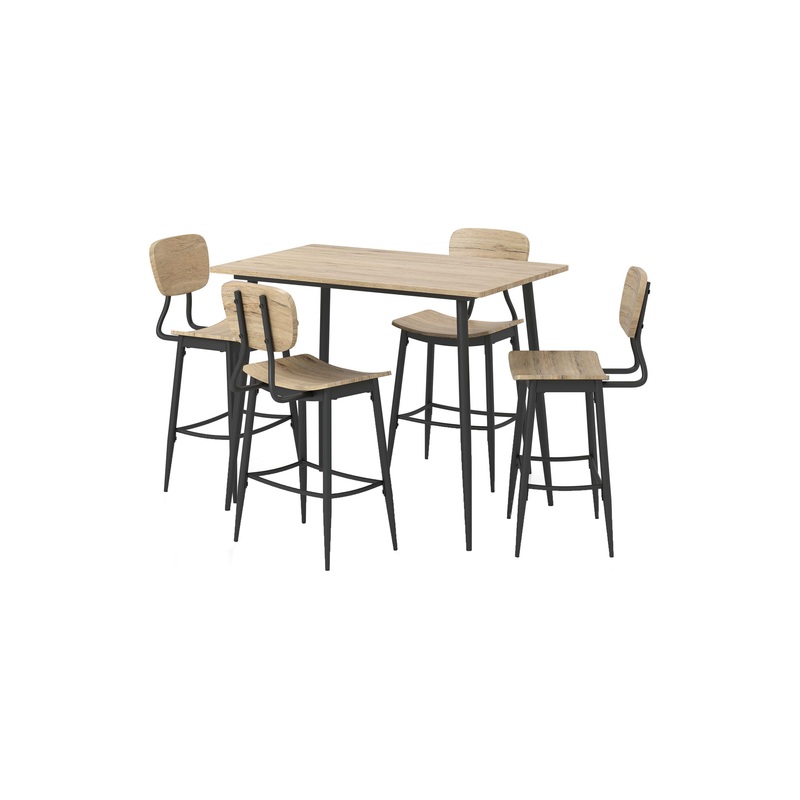 Give your home a cool, casual atmosphere perfect for catching up with friends and family with this charming transitional five-piece wood counter height dining set featuring a mixed material look for an added industrial touch. Its rectangular tabletop and four chair seats and backs feature a natural wood finish with appealing wood grain accents and rounded corners. Bronze finish metal framework includes round legs that taper almost to a point and chairs with built-in footrests.