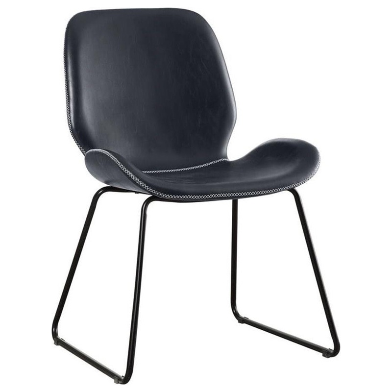Mark your dining or living room with the Shara Black Accent Chair. Smooth rounded metal supports along the base give rise to the sleek faux leather top for a refined Contemporary aesthetic. The contoured back and rounded seat are intricately detailed by contrast stitching while its smooth cushioned faux leather upholstery provides a comforting rest for you and your guests.
