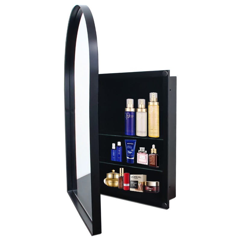 Elegant Arch Design: Upgrade your bathroom with this stunning 24 x 36 inch arched medicine cabinet. Its elegant design and mirrored surface instantly elevate the style of your space, creating a sophisticated and functional focal point. The sleek metal fram