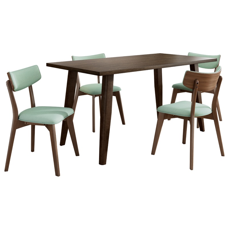-[Complete Dining Set] Enhance your dining space with this elegant set, featuring a stylish wood dining table and four upholstered chairs for a cohesive and modern look.
