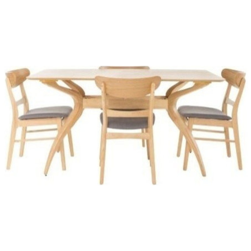 Gift your dining room with a set of elegant curves and a splash of color. With matching wood finishes, you can't go wrong with this dining set. Including one table and four chairs, this set is ideal for any home. The mid-century style and smooth wood finis
