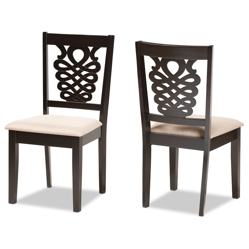 Gervais Sand Upholstered Dark Brown Finished Wood 2-Piece Dining Chair Set – Transitional – Dining Chairs – by Ezmod Furniture