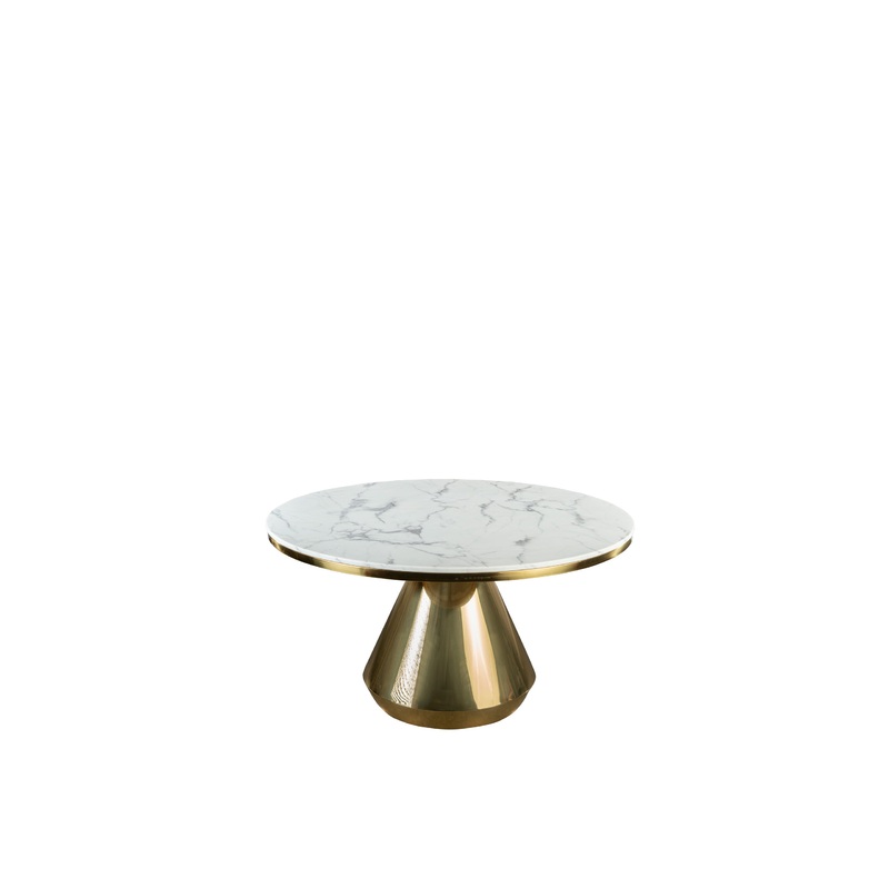 -White marble top round dining table with gold stainless steel base can sit 6 people. It can be used indoor and outdoor. -Measurements: 54"w x 54" d x 29.5"h, 176 lbs -Materials: Marble, stainless steel -Colors: White, goldModel # (MPN)SK1972-54Product ID2