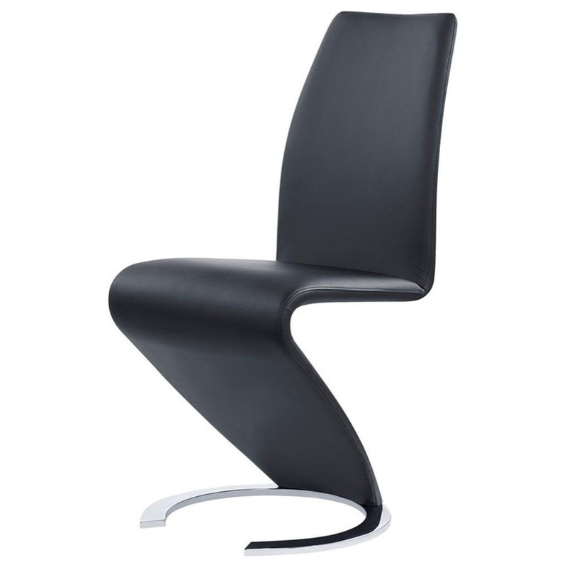 Introducing Faux Leather Z-Shape Dining Chairs by Global Furniture USA. With a Z-Shape design and horse shoe shaped base this dining chair will liven up your contemporary home. This sturdy chair is finished in a black PU material over foam fill for a comfo