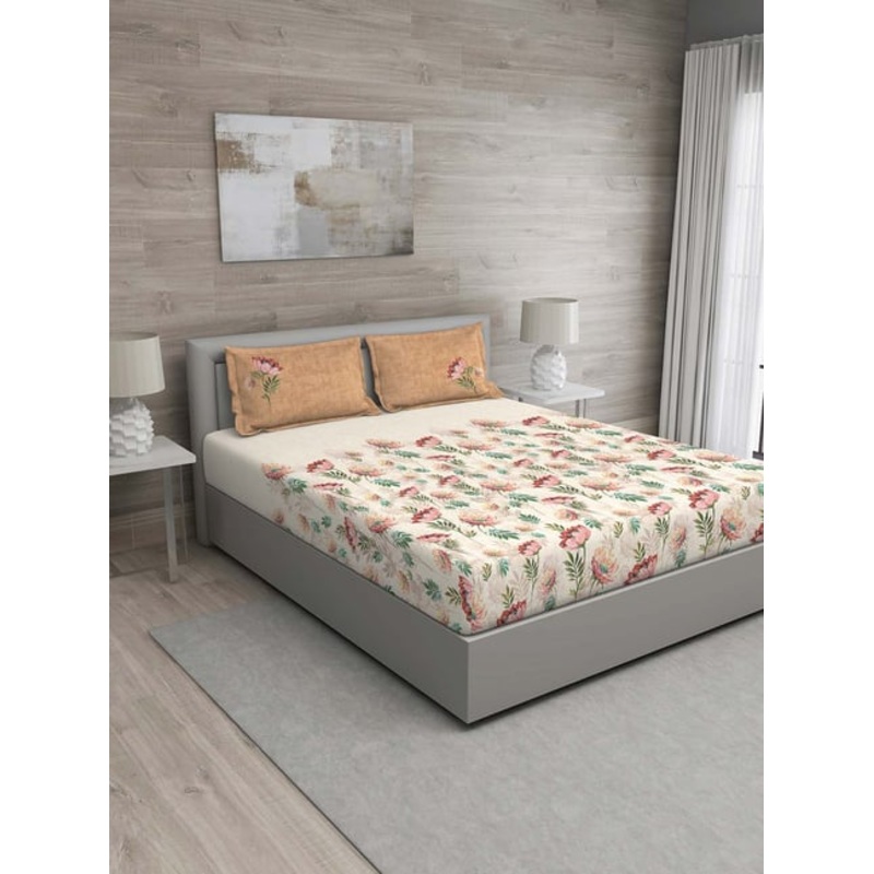 GR4670179899GM Beige & Orange 100% Cotton 144 TC Queen Bedsheet Set