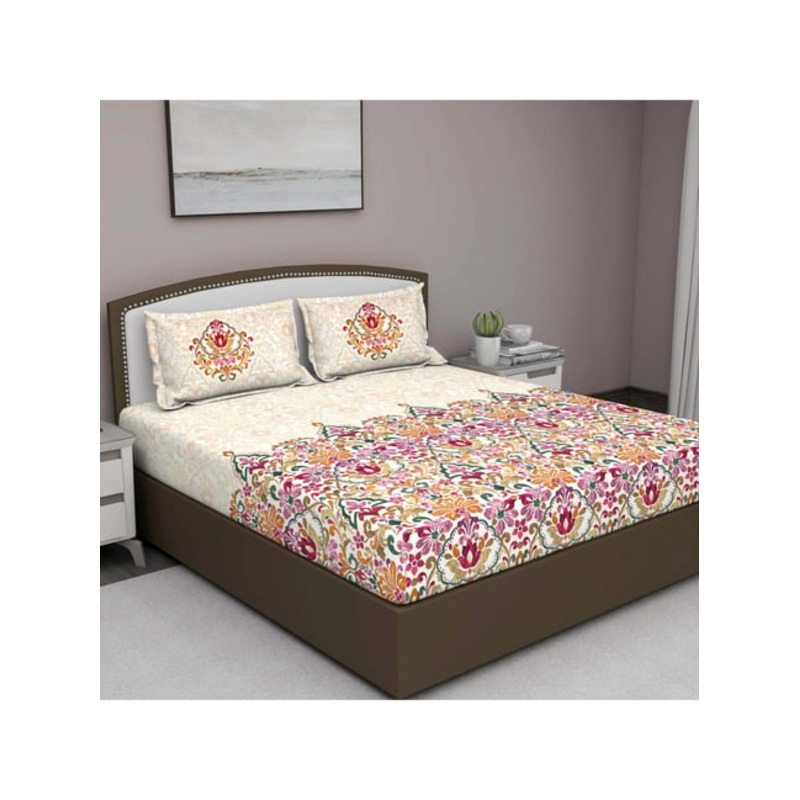 GR4670177868GM Beige & Pink 100% Cotton 180 TC King Bedsheet Set